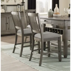 2pcs Antique Gray Finish Counter Height Dining Chairs Set – Upholstered Seats with Gray Textured Fabric, Heavy-Duty 250 Weight Capacity, Classic Wood Frame Table Chairs for Breakfast Nook